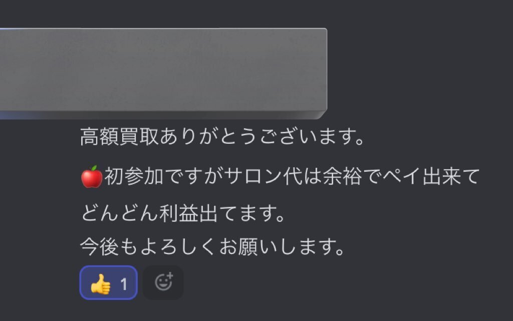 メインの🍎などが定価以下での仕入れの手法を公開しております、またそれに必要なものをサロン内で他の会社様からの提供で販売が行われております。